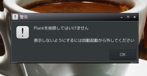インストール直後はDockyが入っていたからか、自動更新でPlankに切り替わるまで警告が何度かでたり、