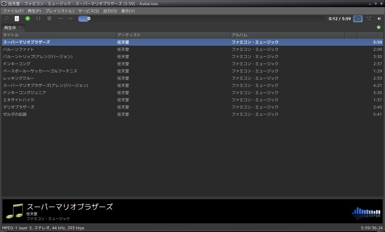 ちなみにAudaciousでも同様に、きちんとタイトルが表示される。