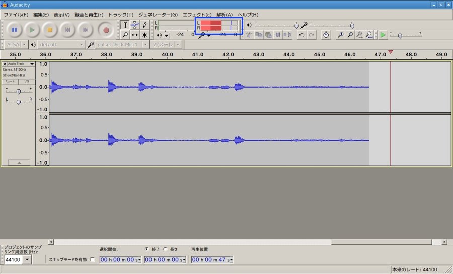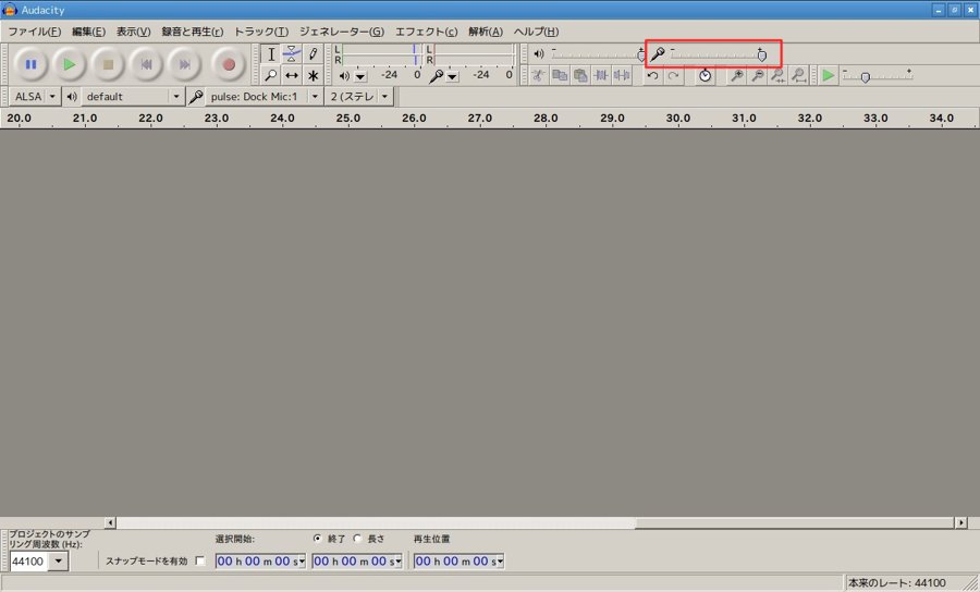 次にAudacityを立ち上げ、音量チェックも兼ねて一度軽く録音してみる。