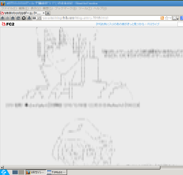 状況としては、Firefoxを使いながらTimidityでMIDIファイルを聞いていた、というか、音がちゃんとなっているのかを逐一チェックしながら2時間ぐらい突っ走ってた。FirefoxもTimidity絡みで検索掛けたりタブも3つぐらい増えたりしつつ、最終的に調べるのに飽きてやる夫板系のまとめブログを見ていたところでフリーズ。気休めにモザイクかけてみたが、満足さんだともろバレですなw