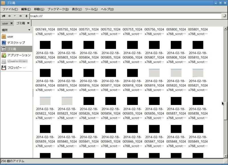これ、一つ一つが「フリーズした時に開いていた画面」をキャプチャしたっぽいpngファイルで、ファイル名も固まった時の時間。2月18日の午前0時53分51秒。1024☓768は使ってるPCの画面サイズ。