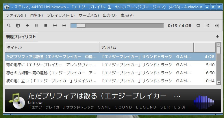 ZorinOS(Rimix)に最初から入っていたメディアプレイヤーがAudaciousだった。動作が軽量でちゃんと再生できて、できればタスクトレイ(収納アプレット)に収納できて、更になんだかの形でmidiに対応している(要サウンドフォント)ので、今のところはこれで行こうと思う。